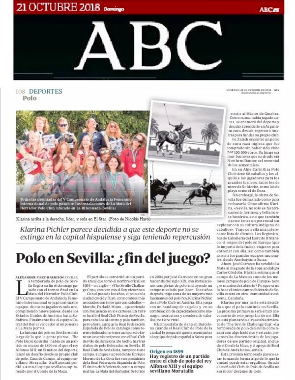 Klarina Pichler arrived in Seville, Andalusia, from her own polo club in Austria in 2013. Klarina is a player of whom it was said she was in the top ten women in the world, reaching a +4 goal handicap…Growing up with horses in her native Salzburg, she was a champion at dressage, show-jumping and by the age of twenty-five had moved on to jockeying racehorses in Munich in Germany.